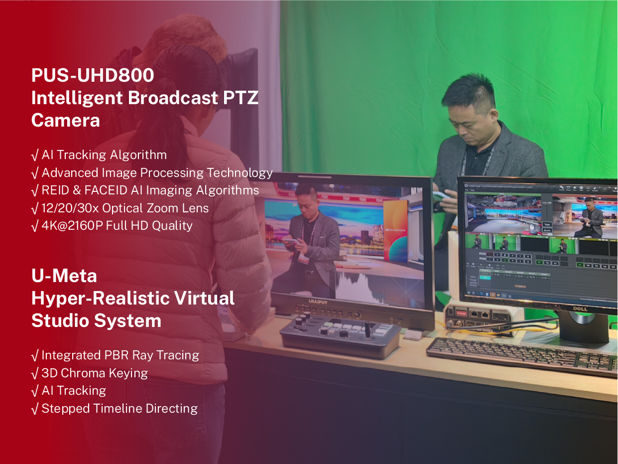 At the exhibition, PUAS highlighted its newly upgraded end-to-end solution featuring the deep integration of the UHD800 FREE-D PTZ camera and the U-Meta virtual studio system. The system incorporates high-precision real-time AI tracking algorithms, ReID and FaceID AI imaging technologies, along with ultra-low latency rendering output and compositing capabilities, enabling multi-camera synchronization and real-time interaction within complex scenes. It delivered exceptional performance even under demanding conditions such as high frame rates and High Dynamic Range (HDR), attracting significant attention from film and television production companies, broadcasters, and technical experts for in-depth discussions.