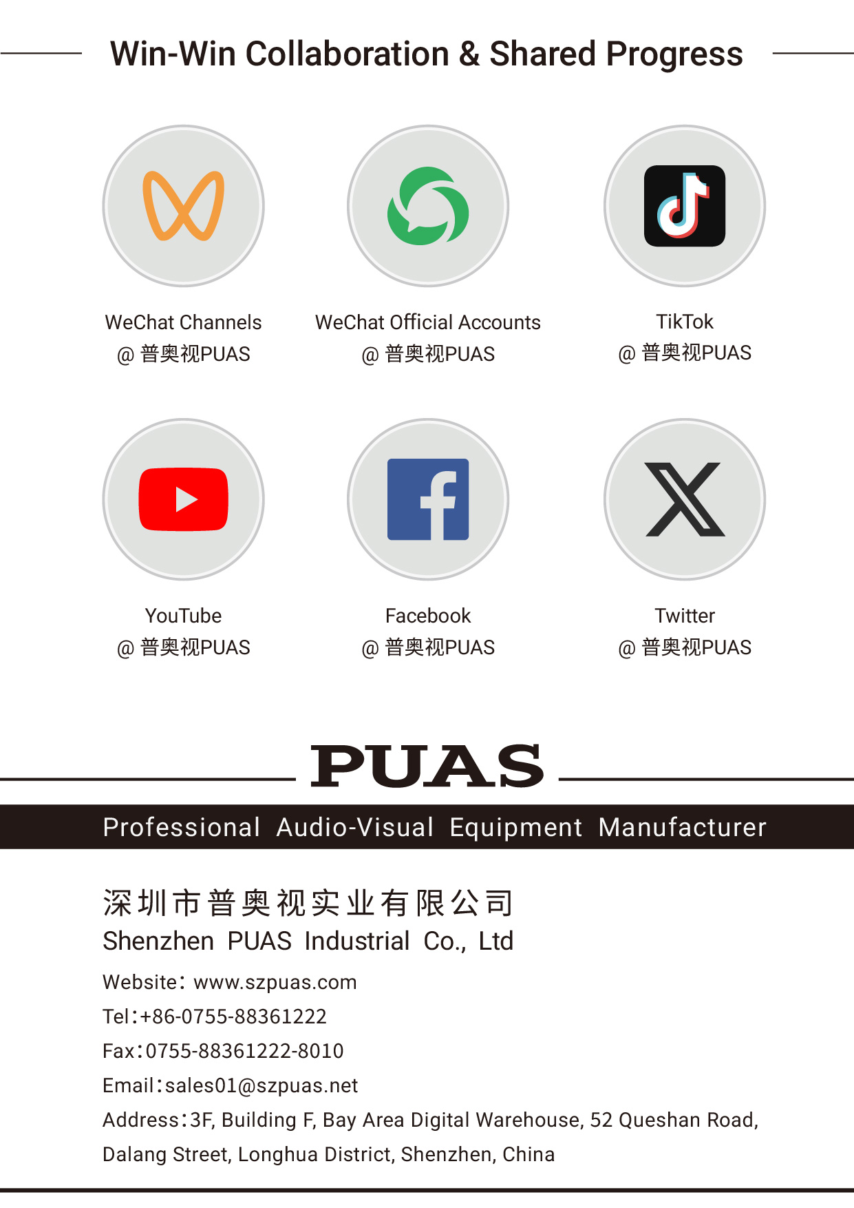 We sincerely extend our gratitude to all the guests, partners, and industry friends who visited our booth for their support and valuable feedback. Remaining committed to its development mission of "Empowering Products, Adding Value for Customers," PUAS will continue to work hand-in-hand with you to witness and advance every creative possibility, steadfastly moving towards the goal of becoming a globally leading audio-visual equipment manufacturer.